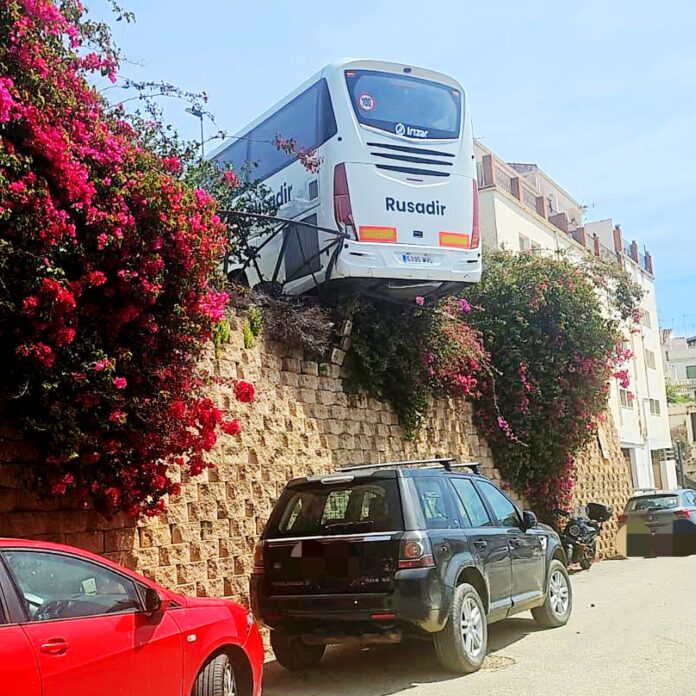 En el día de hoy un autobús ha tenido un percance junto a la parada de autobús situada en la Fuente de La Malagueña. Así ha quedado el autobús que ya ha sido retirado.