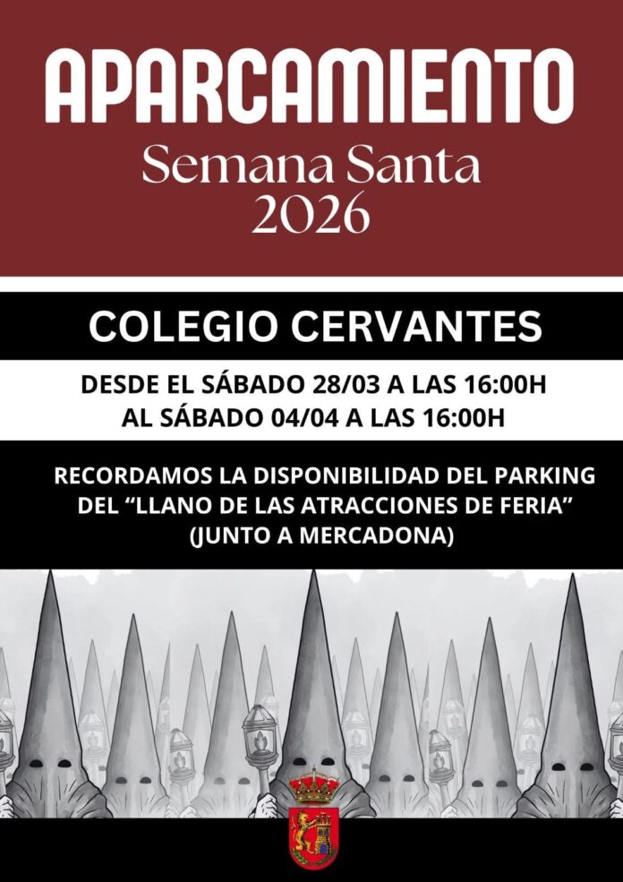 InicioÁlora eternaActualidadAparcamientos Aparcamientos 28 marzo, 2026 13 🚘APARCAMIENTOS SEMANA SANTA 2026✝️ 📍Colegio Cervantes 📍Llano de Atracciones de Feria (junto al Mercadona) 🗓⏰️Del sábado 28 de marzo desde las 16h al sábado 4 de abril a las 16h Comparte en redes sociales Compartir FacebookXPinterestWhatsApp Artículo anteriorCentro de interpretación «Paco de Lucía»Artículo siguienteCupón de la ONCE ARTÍCULOS RELACIONADOS Actualidad Cupón de la ONCE F.L. Carrasco Bootello - 28 marzo, 2026 Actualidad Inauguración F.L. Carrasco Bootello - 20 marzo, 2026 Actualidad Sábados flamencos F.L. Carrasco Bootello - 20 marzo, 2026 ÚLTIMOS ARTÍCULOS Horarios e itinerarios (Domingo de Ramos) 28 marzo, 2026 Celebraciones parroquiales 28 marzo, 2026 Caída accidental 28 marzo, 2026 Cupón de la ONCE 28 marzo, 2026 Cargar más