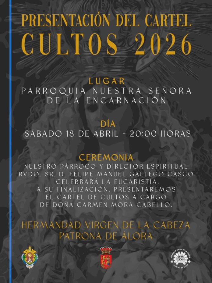 InicioÁlora eternaCofradíasCartel 2026 Cartel 2026 11 abril, 2026 16 Comparte en redes sociales Compartir FacebookXPinterestWhatsApp Artículo anteriorFiesta de la Divina Misericordia ARTÍCULOS RELACIONADOS Cofradías Orígenes del Silencio F.L. Carrasco Bootello - 8 abril, 2026 Cofradías Miércoles Santo (Horarios e itinerarios) F.L. Carrasco Bootello - 31 marzo, 2026 Cofradías Martes Santo (Horarios e itinerarios) F.L. Carrasco Bootello - 30 marzo, 2026 ÚLTIMOS ARTÍCULOS Fiesta de la Divina Misericordia 10 abril, 2026 Nuestro Padre Jesús Nazareno – Noalejo (Jaén) 10 abril, 2026 Nuestra Señora de los Dolores – La Carolina (Jaén) 10 abril, 2026 Regalo inesperado de la providencia 9 abril, 2026 Cargar más