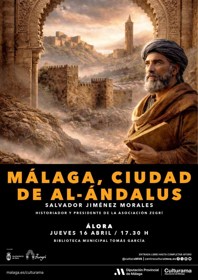 El próximo jueves, 16 de abril, a las 17:30h, tendrá lugar en la biblioteca municipal Tomás García la conferencia «Málaga, ciudad de Al-Ándalus» de parte de Salvador Jiménez Morales, historiador y presidente de la asociación Zegrí.