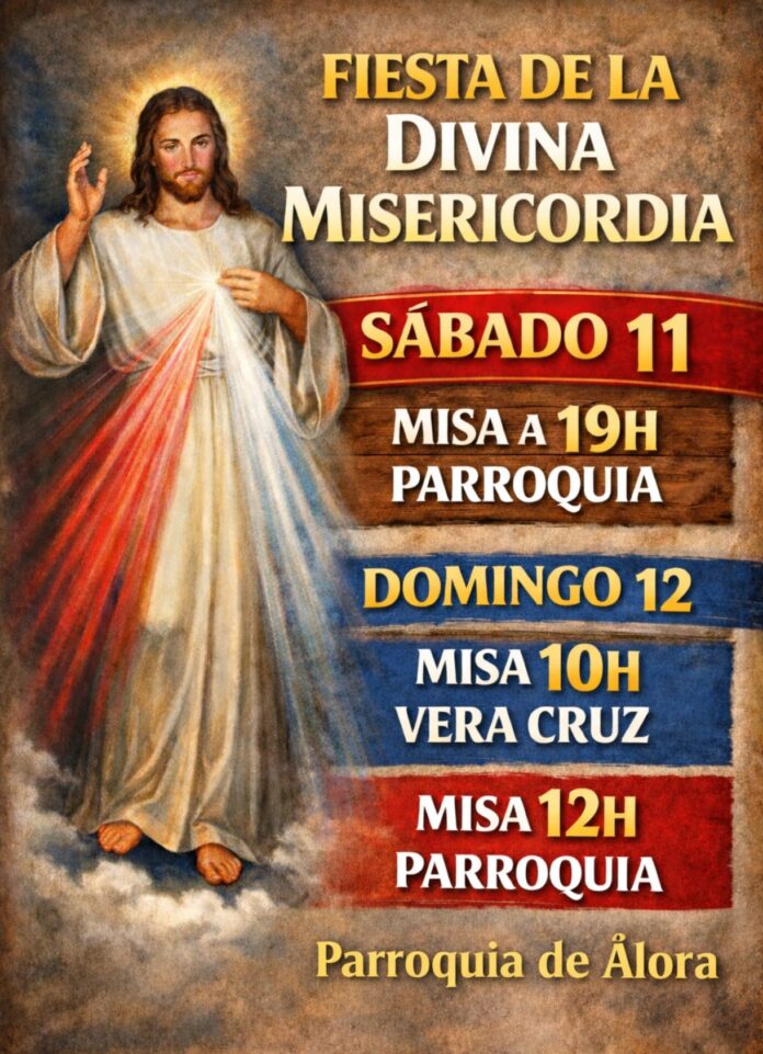 InicioÁlora eternaParroquiaFiesta de la Divina Misericordia Fiesta de la Divina Misericordia 10 abril, 2026 6 Comparte en redes sociales Compartir FacebookXPinterestWhatsApp Artículo anteriorNuestro Padre Jesús Nazareno – Noalejo (Jaén) ARTÍCULOS RELACIONADOS Parroquia Celebraciones parroquiales F.L. Carrasco Bootello - 28 marzo, 2026 Parroquia Cirio Pascual 2026 F.L. Carrasco Bootello - 22 marzo, 2026 Parroquia Exposición F.L. Carrasco Bootello - 20 marzo, 2026 ÚLTIMOS ARTÍCULOS Nuestro Padre Jesús Nazareno – Noalejo (Jaén) 10 abril, 2026 Nuestra Señora de los Dolores – La Carolina (Jaén) 10 abril, 2026 Regalo inesperado de la providencia 9 abril, 2026 Don Antonio Ruiz Pérez: un sacerdote al servicio de la fe y de Álora 9 abril, 2026 Cargar más