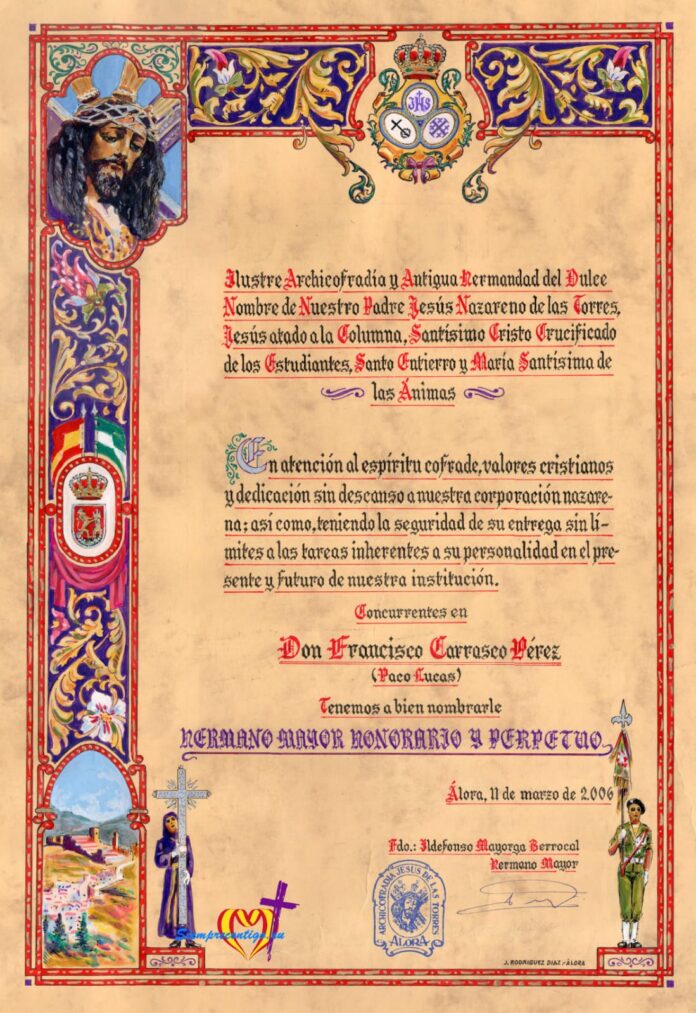 InicioA los pies del NazarenoNuestra esencia más íntimaVigésimo aniversario Vigésimo aniversario 11 marzo, 2026 192 Del nombramiento como Hermano Mayor honorario a mi padre, Francisco Carrasco Pérez. Comparte en redes sociales Compartir FacebookXPinterestWhatsApp Artículo anteriorEfemérides: fallecimiento Navas-ParejoArtículo siguienteRegistros históricos ARTÍCULOS RELACIONADOS Nuestra esencia más íntima Santo Entierro F.L. Carrasco Bootello - 19 marzo, 2026 Nuestra esencia más íntima María del Carmen Carrasco Pérez (1940-2025) F.L. Carrasco Bootello - 17 febrero, 2026 Mis artículos Faros de esperanza F.L. Carrasco Bootello - 18 julio, 2023 ÚLTIMOS ARTÍCULOS Horarios e itinerarios (Domingo de Ramos) 28 marzo, 2026 Celebraciones parroquiales 28 marzo, 2026 Caída accidental 28 marzo, 2026 Cupón de la ONCE 28 marzo, 2026 Cargar más